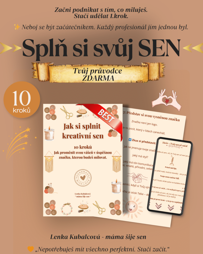 Lenčin e-book mi otevřel oči. Měla jsem jen nápad a spousty pochybností. Dnes mám hotové logo, název značky i jasný plán, co budu šít. Konečeně vím, co a komu tvořím- Děkuji, že jsi mě nakopla vykročit za svým snem. V E-booku jsem našla vše, co jsem potřebovala vědět.